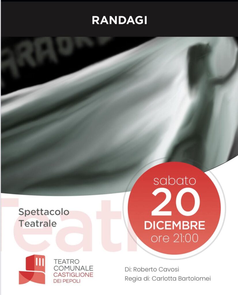 Vi aspettiamo sabato 20 dicembre ore 21:00 al Teatro Comunale di Castiglione dei Pepoli (BO) per il ritorno dello spettacolo “Randagi” di Robero Cavosi, regia di Carlotta Bartolomei.